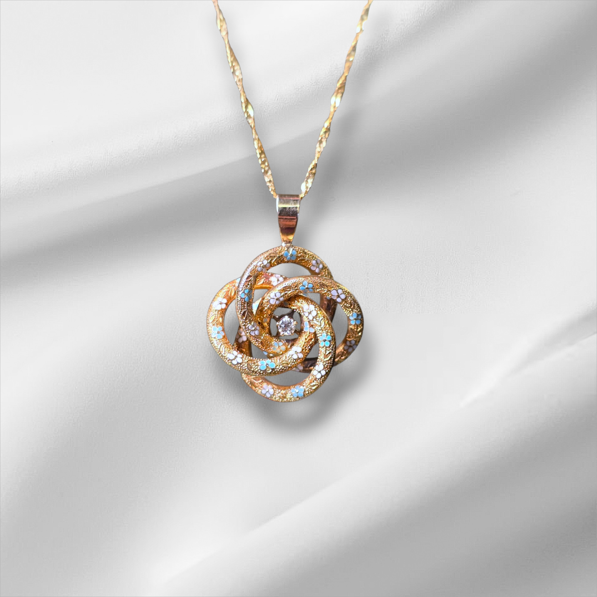 14K Antique White and Blue Love Knot Pendant with Diamonds