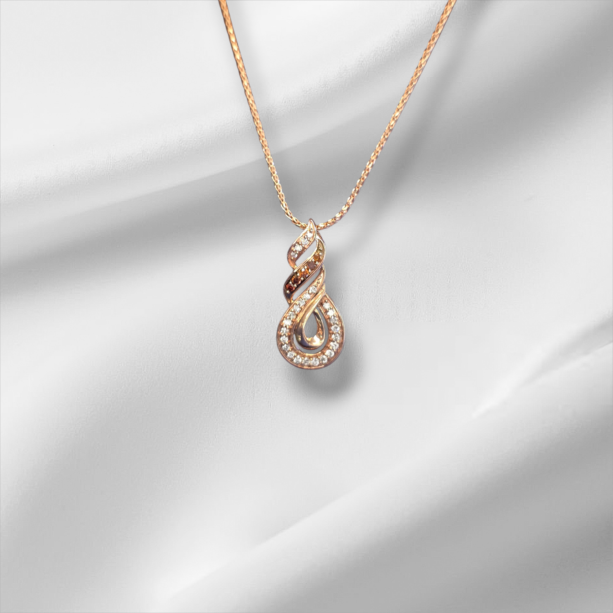 10K Rose Gold Swirl Pendant with White and Chocolate Diamonds