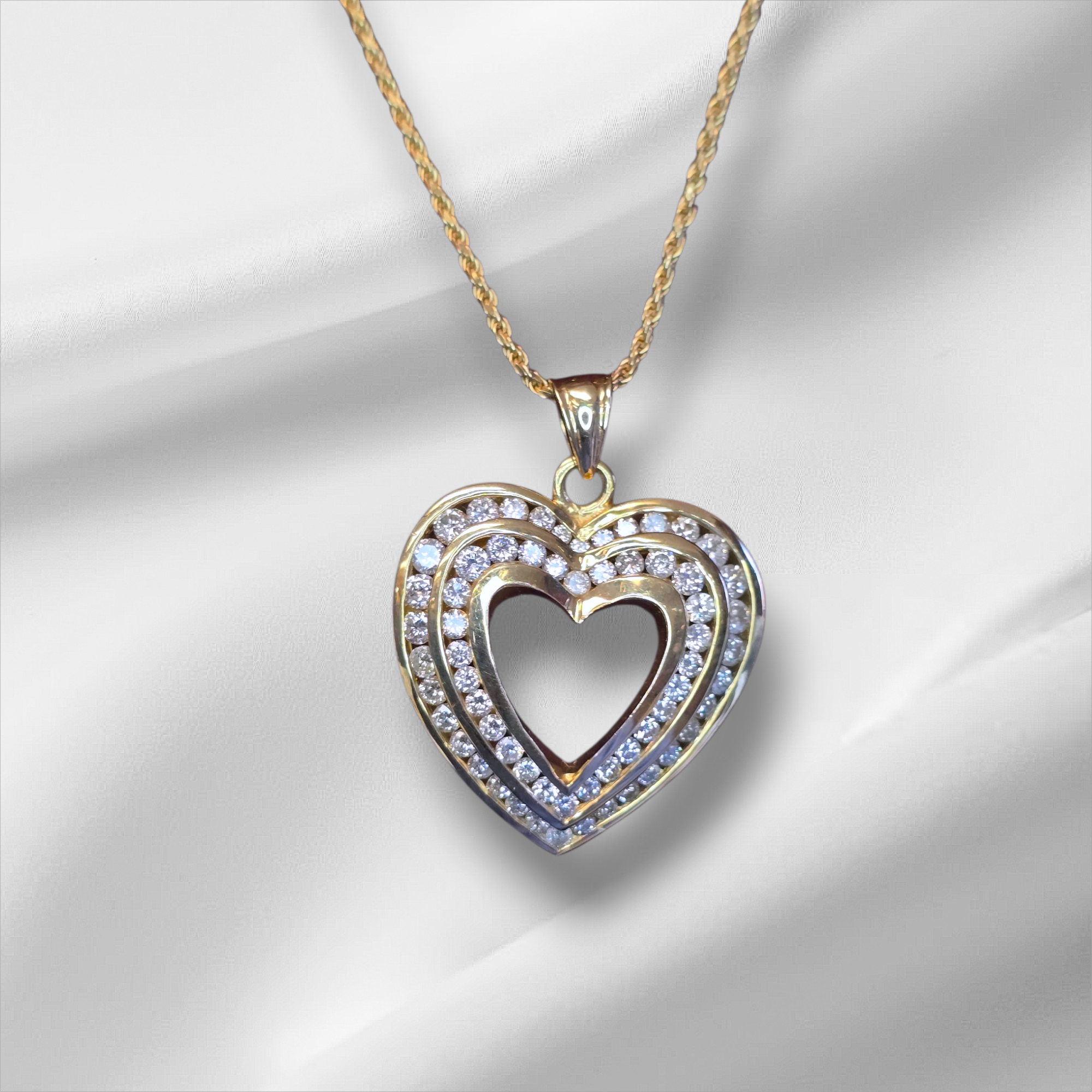 14KY Double Channel Open Heart Pendant with Diamonds