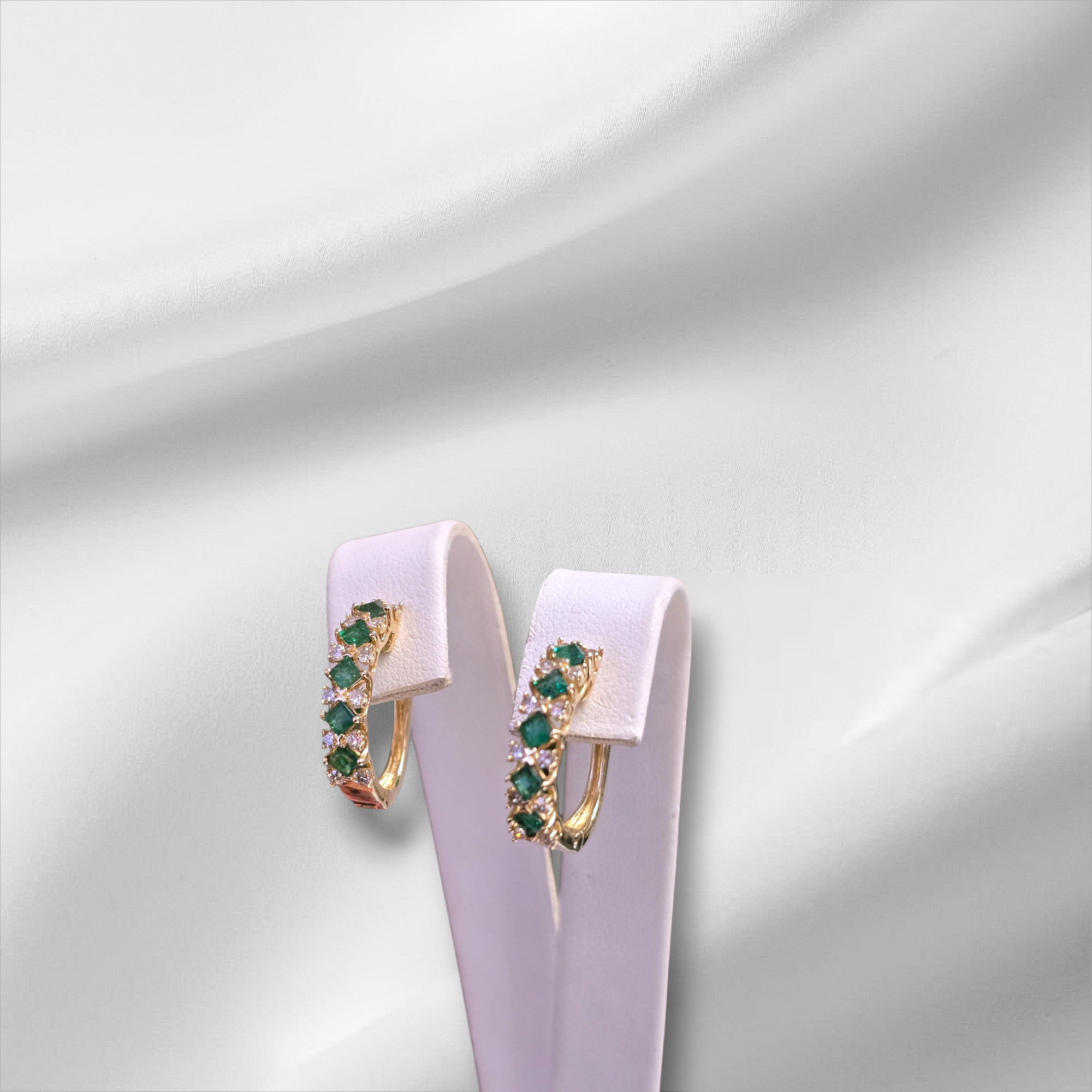 Alternating Emerald and Diamond Lever Back Huggie-Hoop Earrings