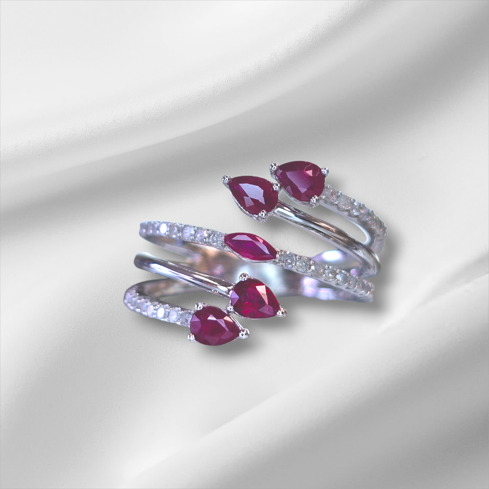 14k White Gold Ladies Ruby Bypass Ring