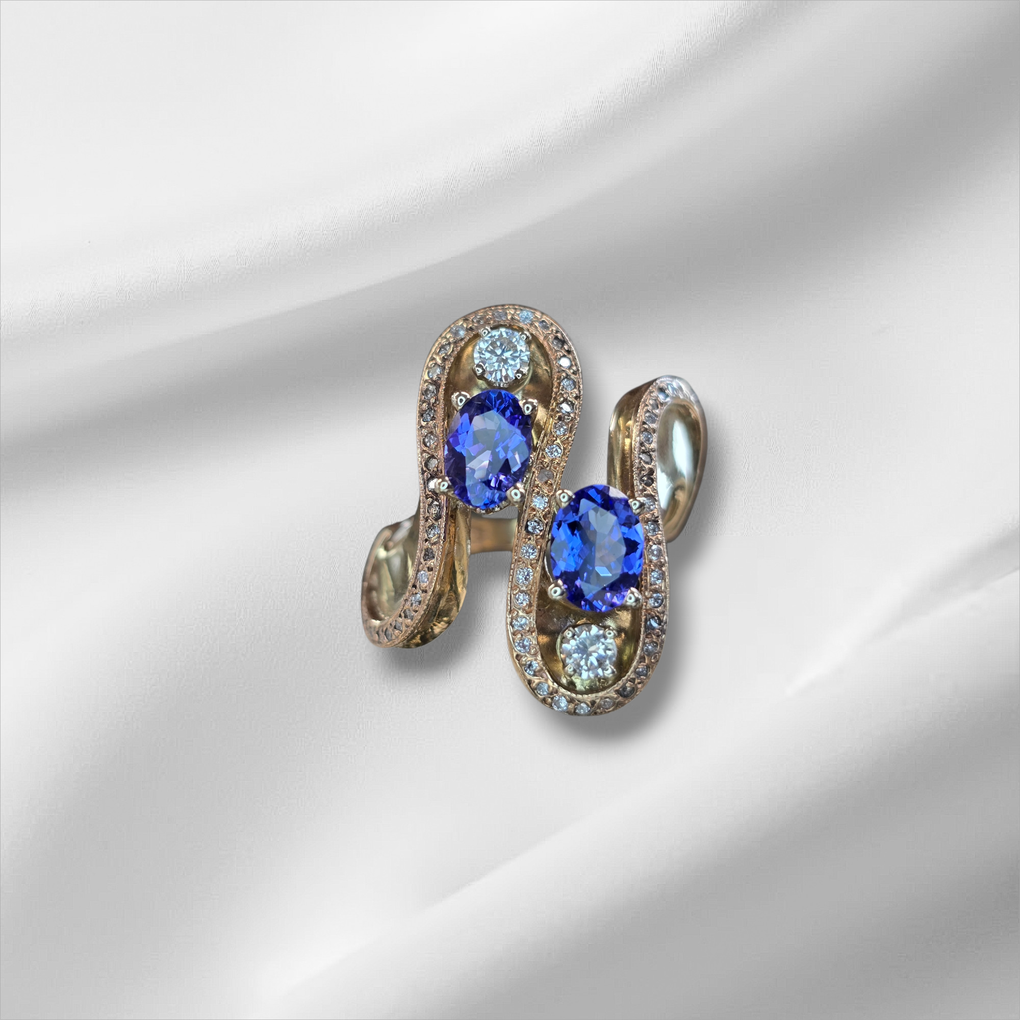 14k Yellow Gold “You and I” Tanzanite Freeform Ring
