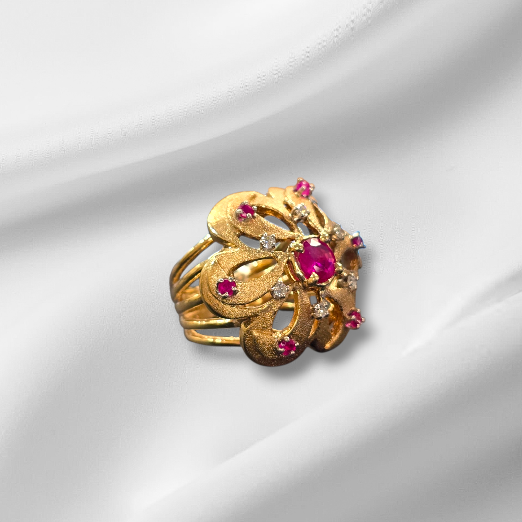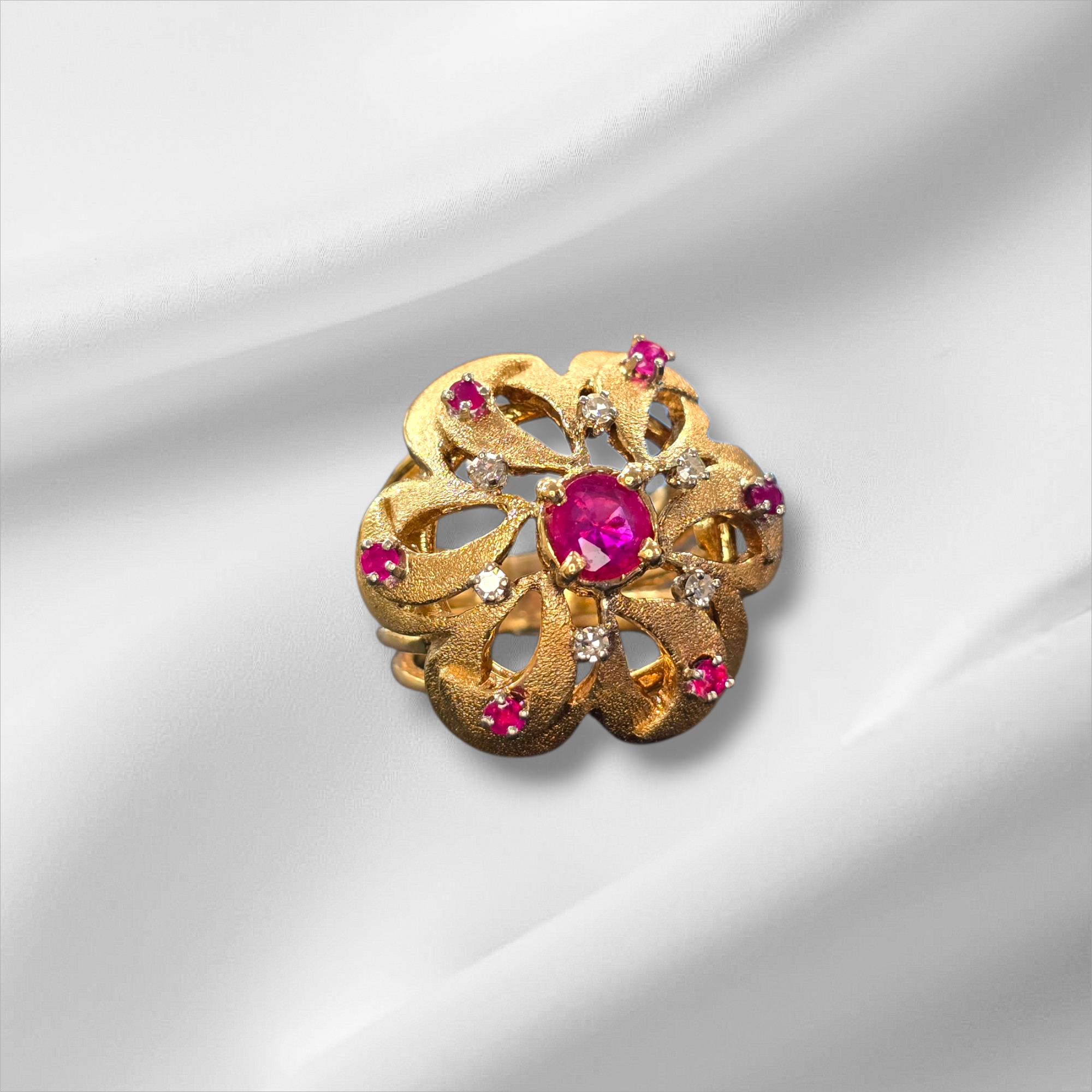 14K Large Ruby and Diamond Flower Ring