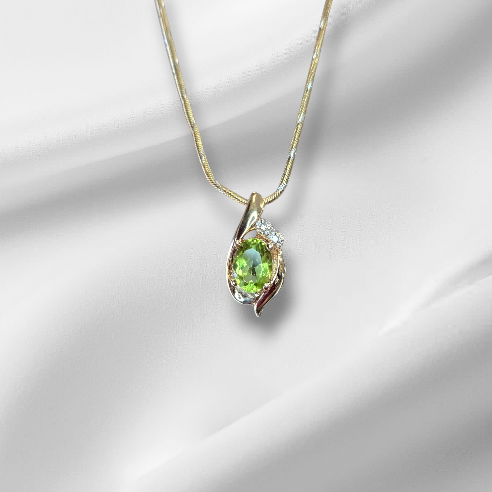 14K Oval Peridot Bypass Pendant with Diamonds and 18″ Snake Chain