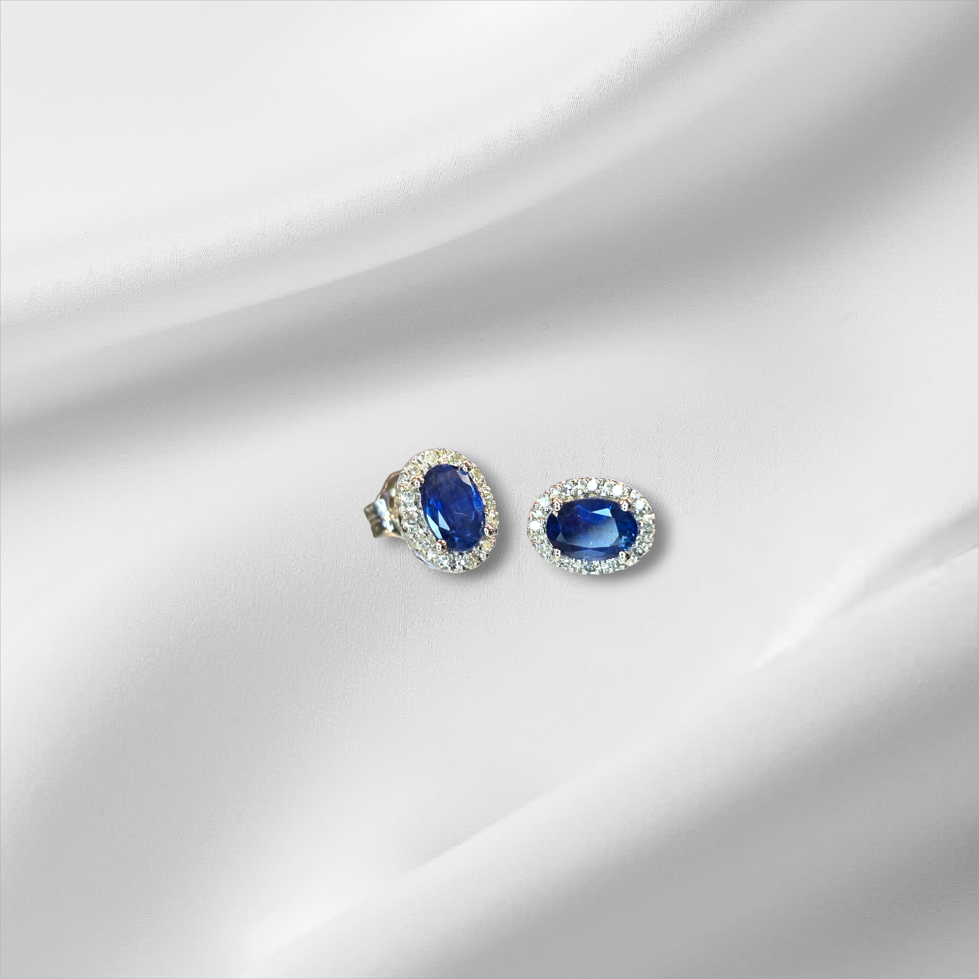 Oval Sapphire with Diamond Halo Stud Earrings