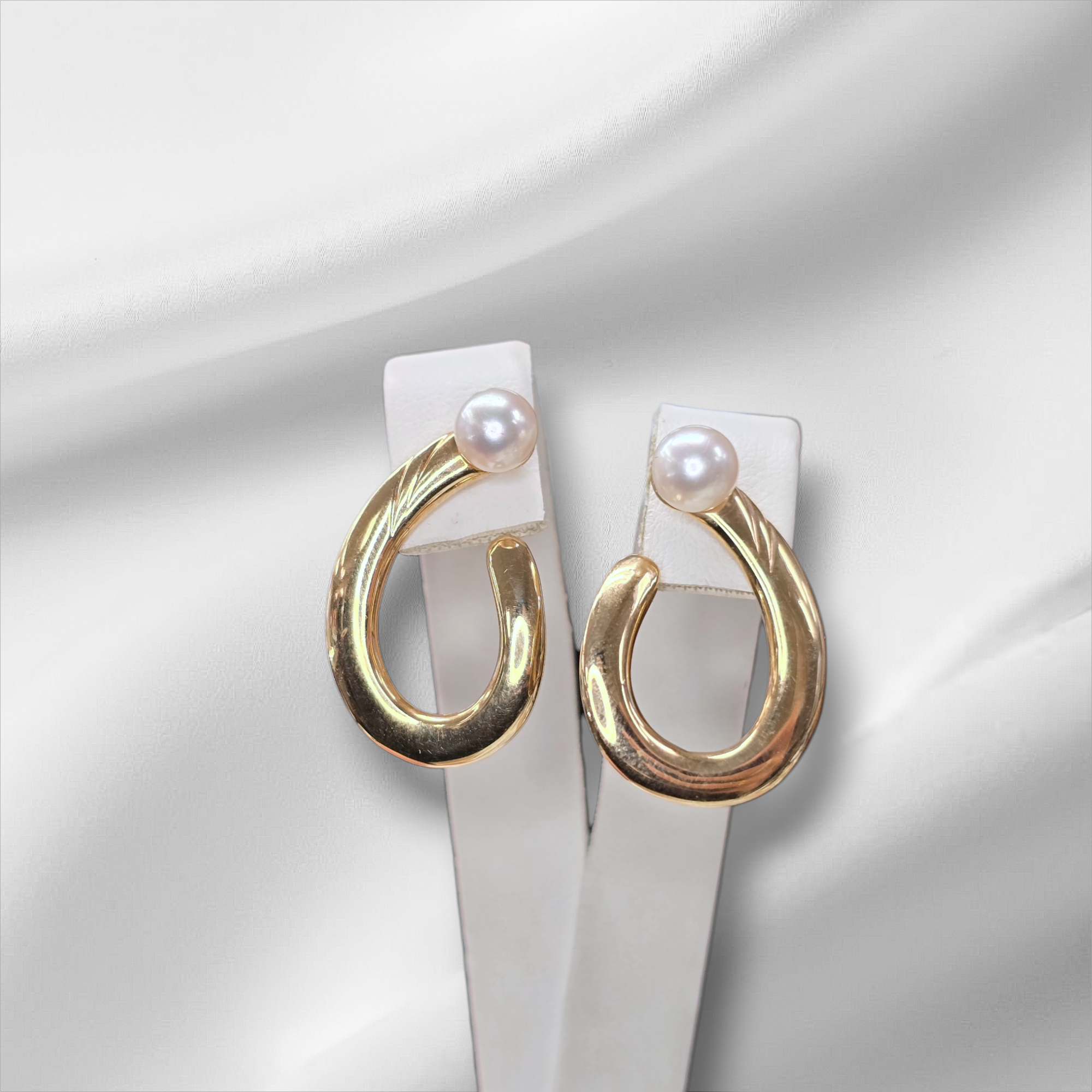 14K Unique Large Swirl Stud Earrings with Pearls
