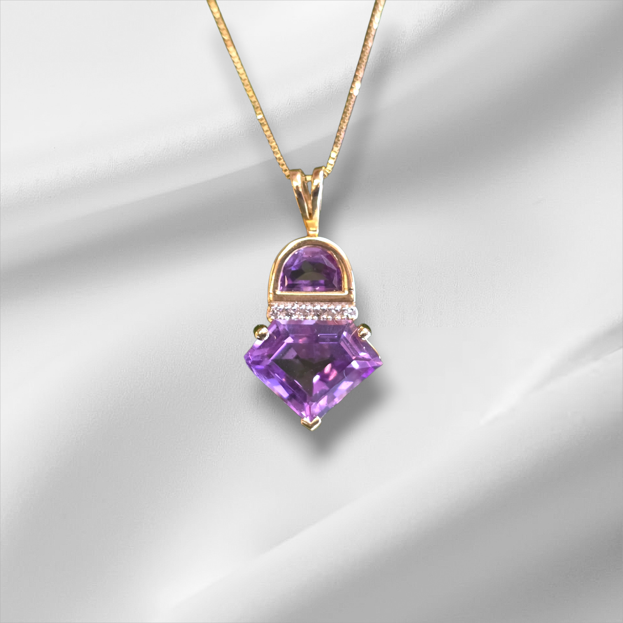 Ladies Unique 14K Yellow Gold Amethyst Pendant with Small Diamonds