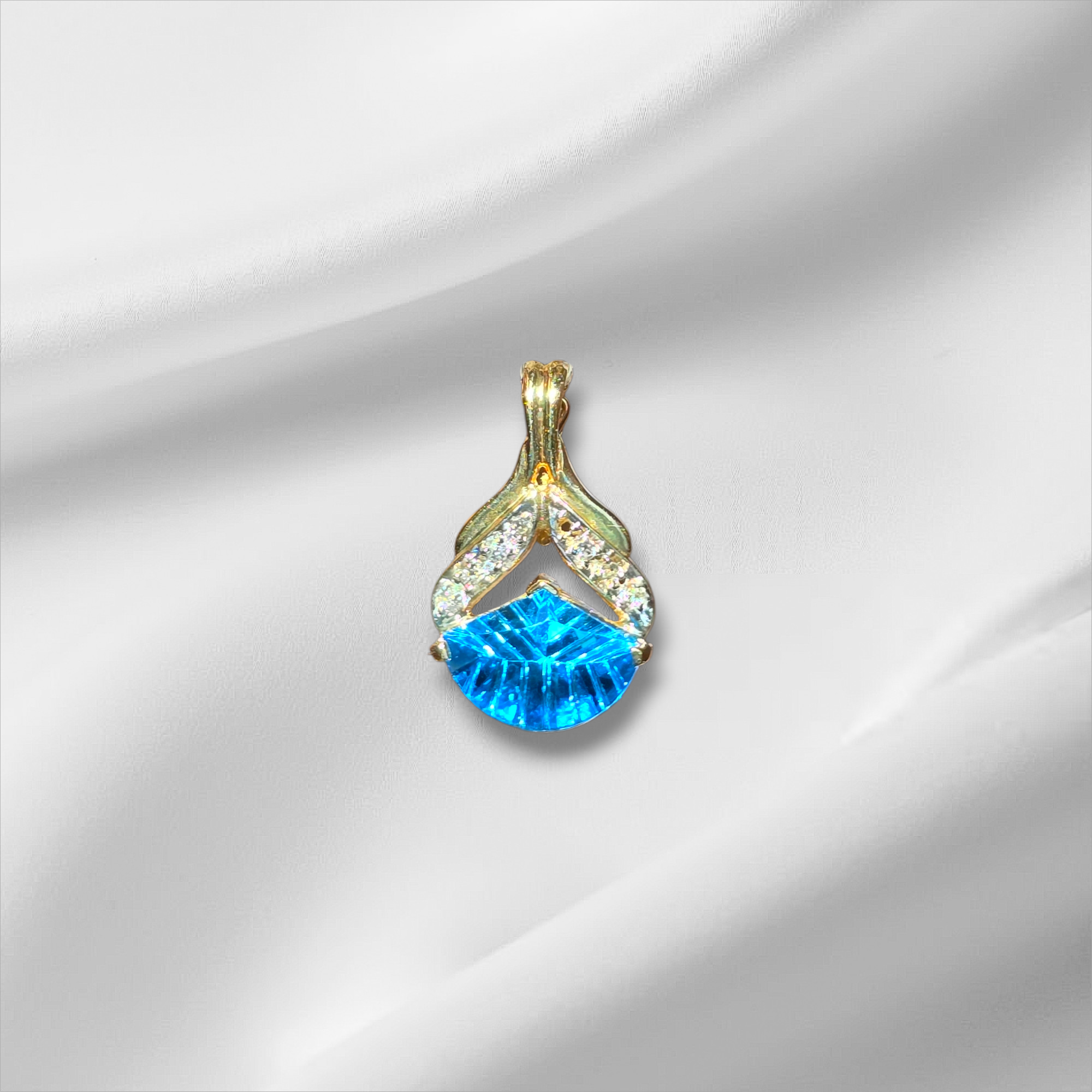 14K Yellow Gold Unique Etched Blue Topaz Enhancer Pendant with Diamonds