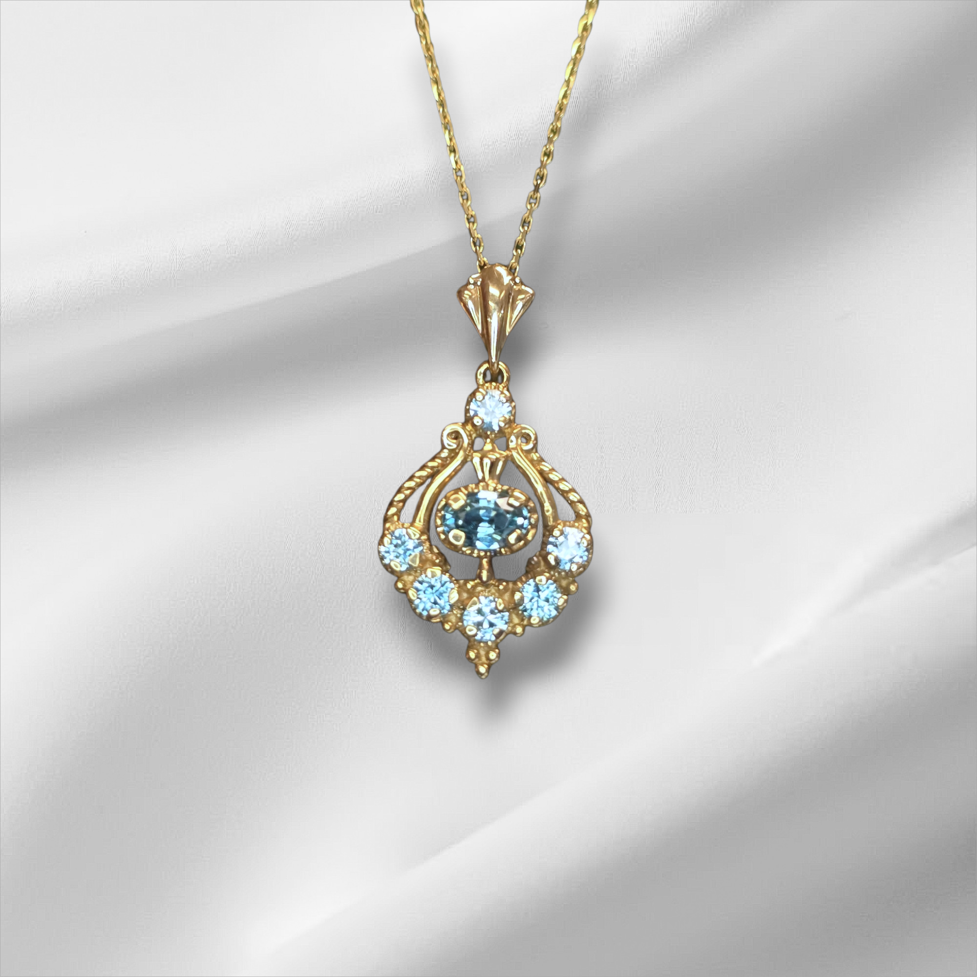 14K Yellow Gold Vintage Style Blue Zircon Pendant